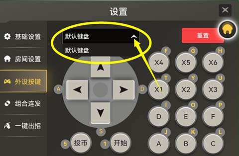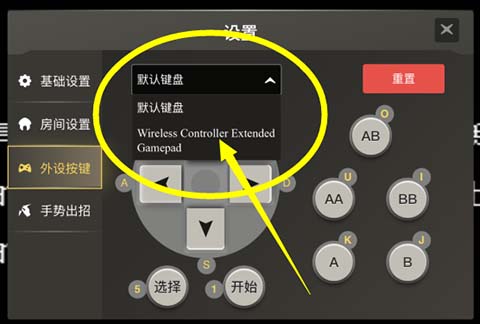 在设置菜单中,选择【外设按键】,这时选项只有【默认键盘】一个选择项。