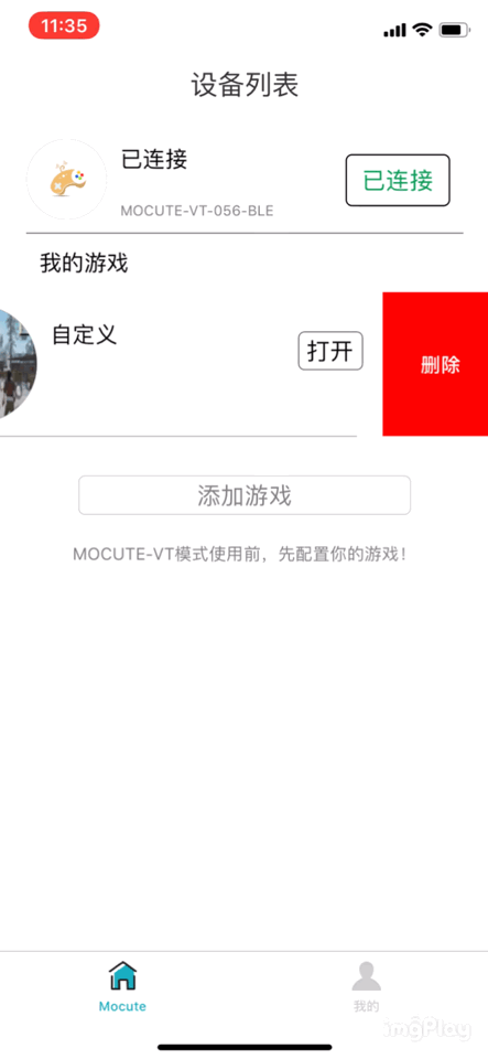 5.删除相关配置的方法:在【我的游戏】列表或【我的配置】列表向左滑动,即可出现删除菜单。删除后需要关闭APP任务重新打开,以免存在内存数扰干扰,更换不同手柄型号时请先删除配置。